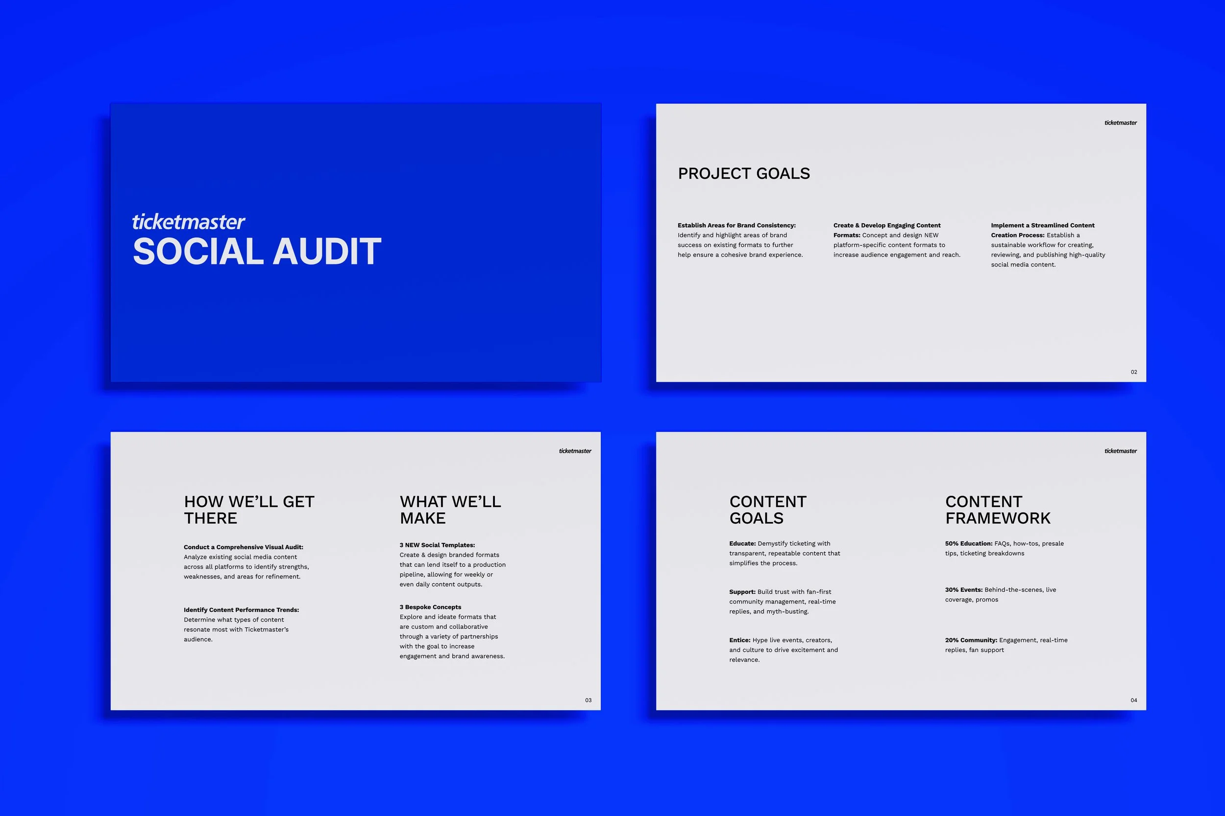 The objective for this project was to reposition Ticketmaster on social media from being seen as a “necessary evil” to becoming a trusted, human, and helpful partner in the live event experience. With this in mind I created a variety of social content formats that users of the brand can engage, share and overall educate it’s audience. In order to achieve this we set the follow project goals.
